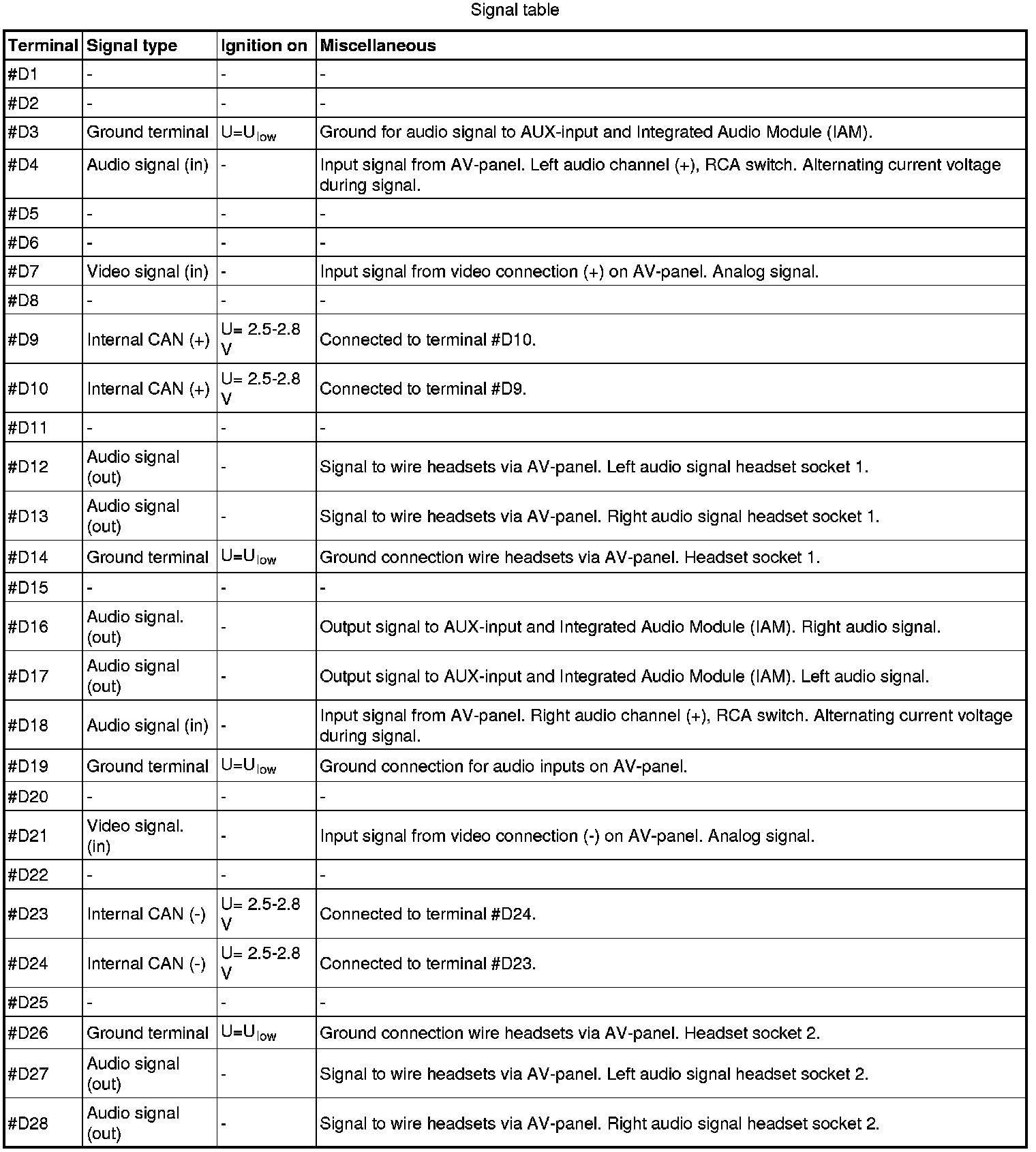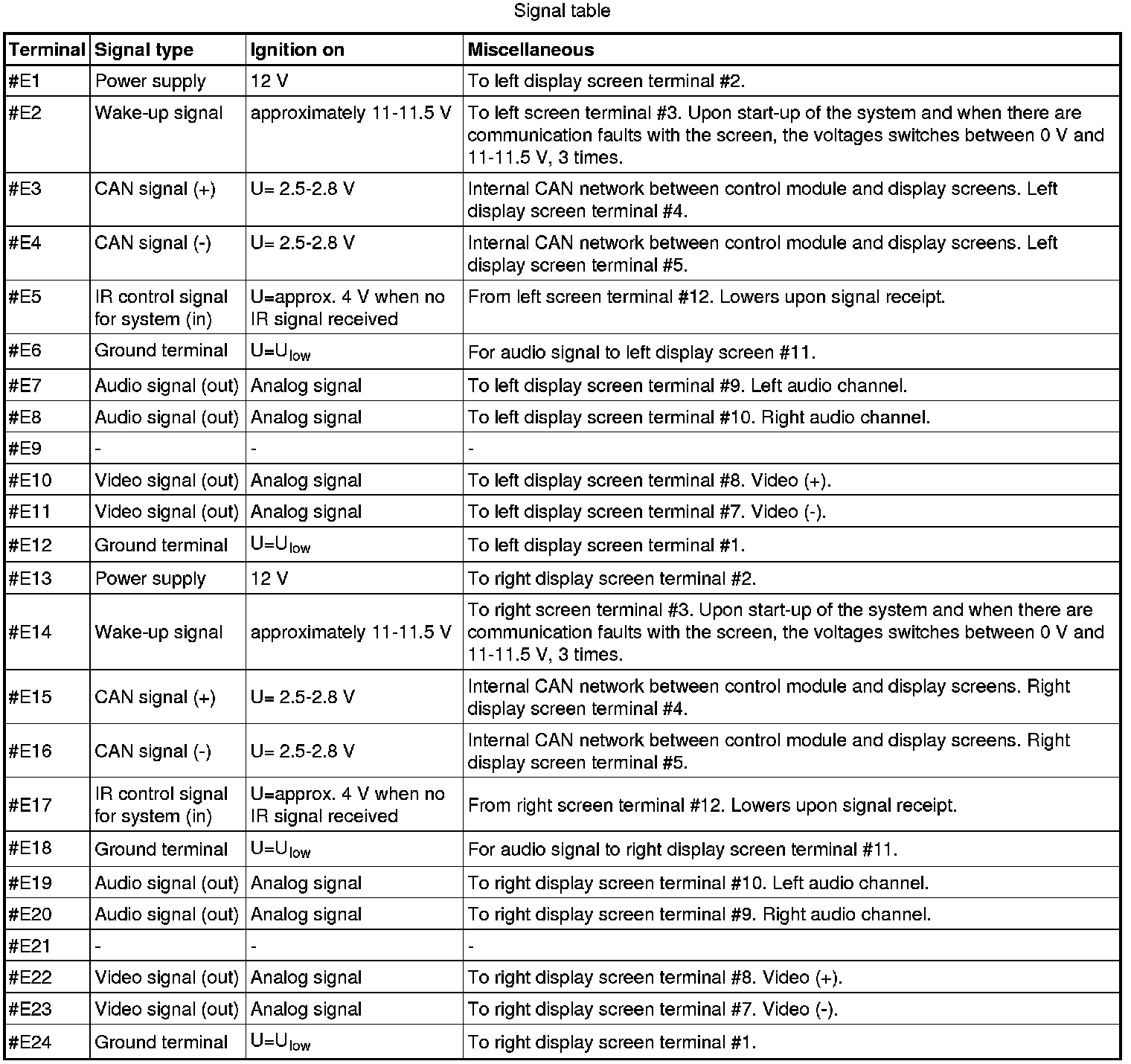 Signal specification, rear seat entertainment module (RSE), generation 4.2