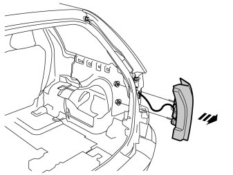 - Remove the rubber grommet (with cables) of the right-hand taillight from the body.
