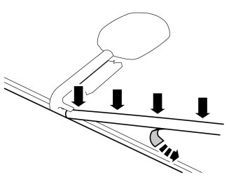 - First position the antenna cable's hooked part and then continue pressing the cable and antenna into place along the tape markings. Press hard so that the tape affixes securely.