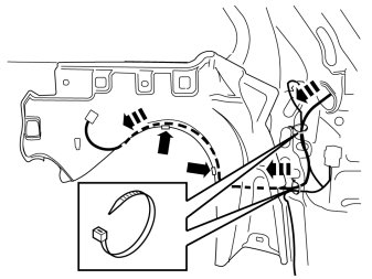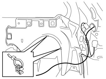 - Use two clamps to clamp the cable around the wheel housing edge and two band clamps to clamp it at existing cable harnesses.