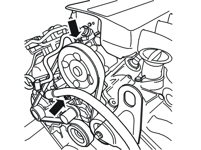 - one end of the ground cable between the engine and body and the hose between the expansion tank and engine