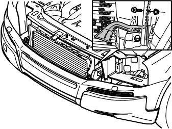 Install the pipe/hose on the compressor in the mounting clip at the upper connection to the condenser and in the holder above the lower coolant hose (as illustrated).