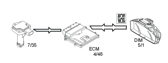 The engine control module (ECM) (4/46) regulates the charge voltage of the generator (GEN) (6/26) (via LIN communication) when requested by the central electronic module (CEM) (4/46) (via CAN communication).