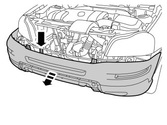 - Detach the panel by carefully bending apart at the lower edge. Bend between the panel and bumper casing until the first catch releases. Then pull the panel straight out so that all catches release.