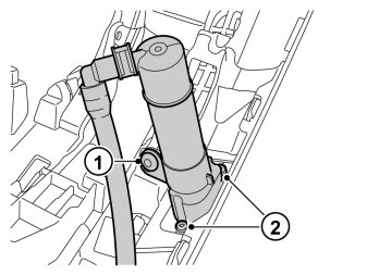 - Remove the headlight washer on both sides by removing the clip (1) and screws (2).