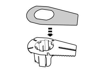 - Install the larger connector (1) with cable tie/metal clip from the kit.
