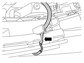 - Position the cable in its cutout between the plastic bracket and the bumper cover. Check that the guide on the side of the bumper cover is inside the plastic bracket.