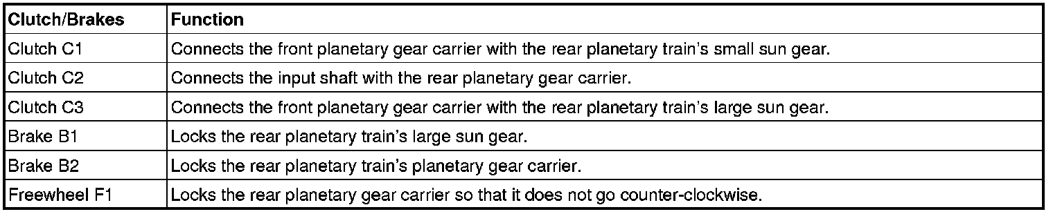 The planetary gear's ratios are controlled by 3 clutches (C1, C2, C3) and 2 brakes (B1, B2).