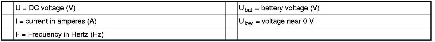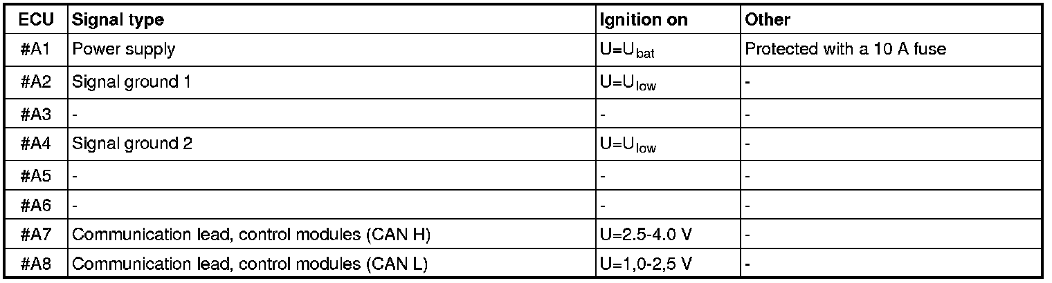 All the values that are given are measured between the respective connection given in column 1 and #2 or #4 (ground).