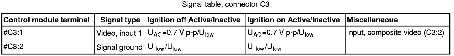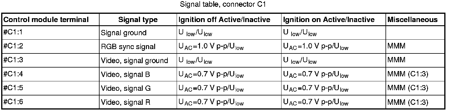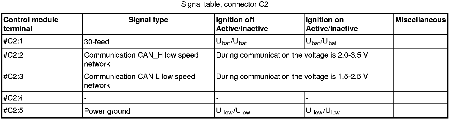 All the values given below are between the respective terminal in column 1 and terminal # C2:5 in column 1 (power ground) unless otherwise stated in brackets after the table entry.