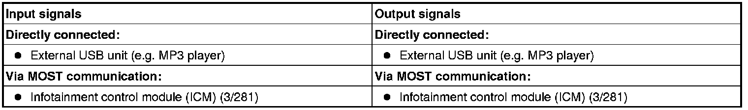 The accessory USB unit has serial optic communication with components on the MOST network. All communication with the accessory USB unit (AUU) is handled via the infotainment control module (ICM).
