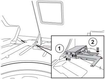- Insert the two legs of the bracket in the corresponding recesses in the backrest bracket and lower it over the retaining pin in the floor.