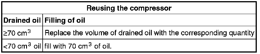 Frequent inspections or compressor oil changes do not normally have to be carried out if the above leak has not occurred or if the vehicle is used in professional circumstances.