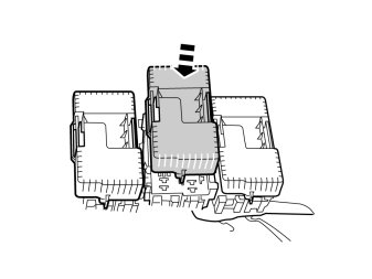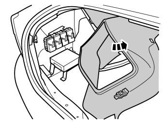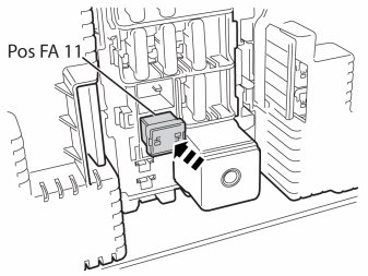 - Press in the catches at the sides of the fuse module RJB-A (black cover) and pull it out.