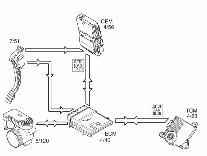 To ensure that the correct throttle angle is reached, the engine control module (ECM) (4/46) controls the throttle shutter in the throttle unit (6/120), mainly using the signal from: