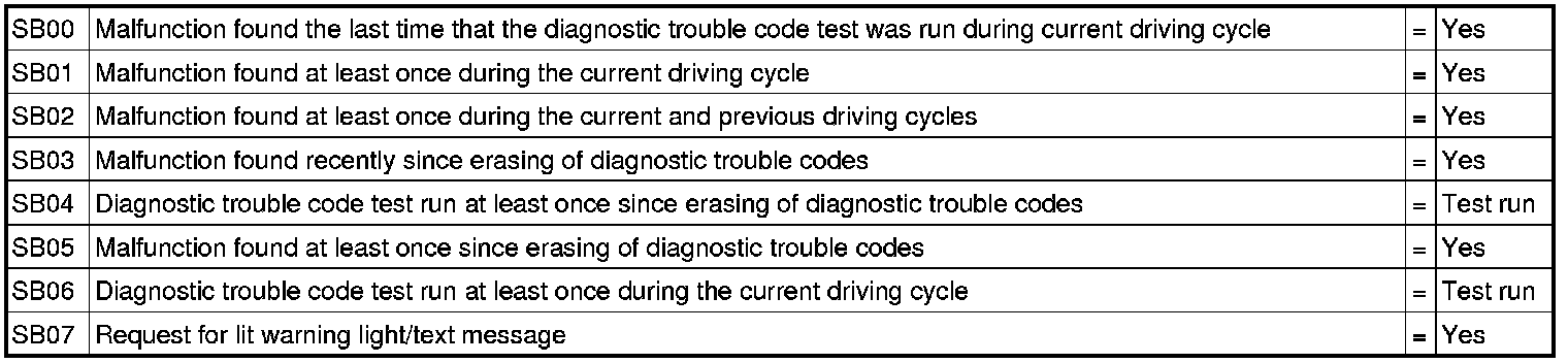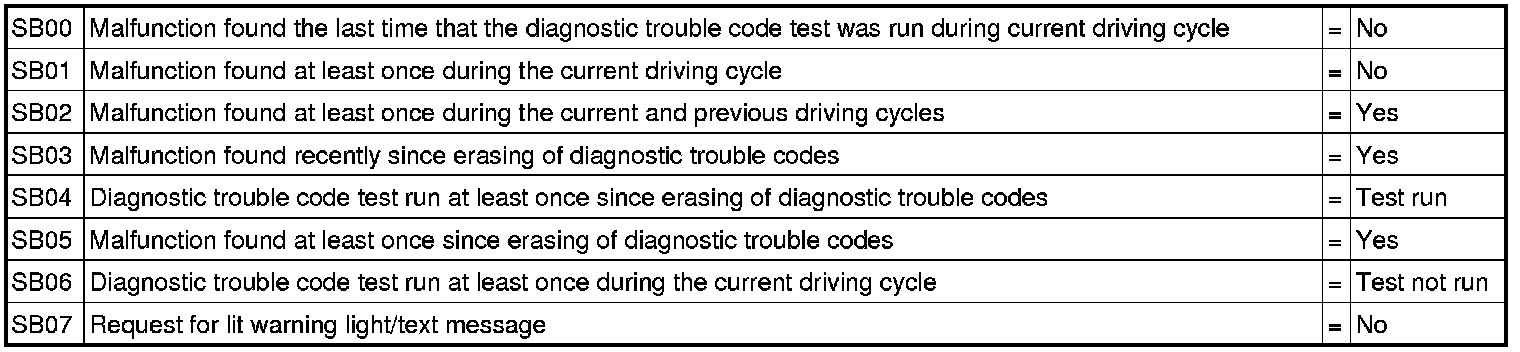By reading out the diagnostic trouble code with associated status identifier, then status for the diagnostic trouble code test (diagnosis) that detects the malfunction and generates the diagnostic trouble code, is obtained.