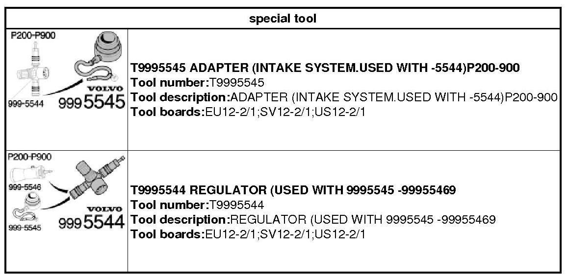 Connect compressed air hose and adjust the regulator to obtain a pressure of max 0.2 bar. There may be a gentle hissing sound from the oil filler opening. This is due to the opening of an intake valve and the leakage of cylinder pressure past the piston rings. If a leak is suspected, spray a soap solution onto the area. Small bubbles are permissible between throttle body (TB) and intake hose (if made of plastic). No bubbles are permissible with rubber hose.