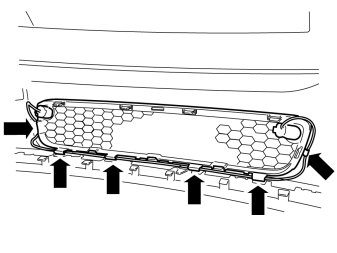 - Remove the cover panel for the left-hand fog lamp. First pry off the right-hand end until the four clips on the inside release. Then pull the panel off to the right