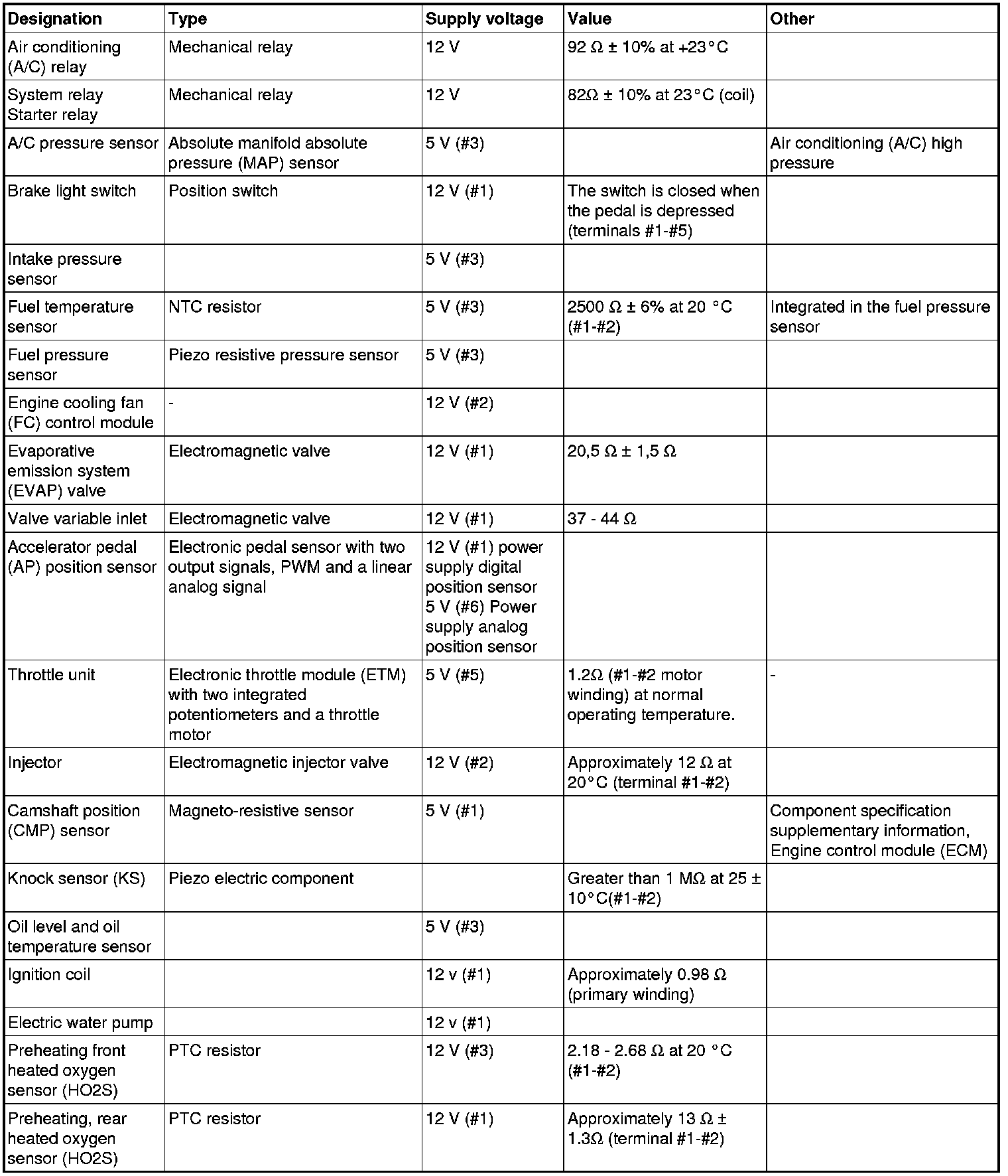 The component specification gives the value of the component when the connector is disconnected. Where no value is given, it is not possible to measure a relevant value at the component.