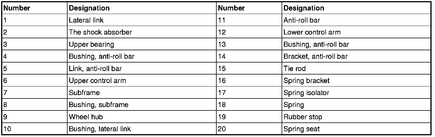 The suspension on either side consists of: spring strut, control arm and anti-roll bar system.