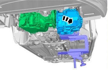 Lower the left hand side of the engine/transaxle approximately 60 mm.