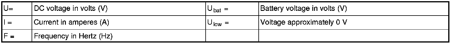 All the values that are given are measured between the respective connection given in column 1 and #2 or #4 (ground).