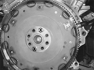 Install the remaining new screws. Tighten. Torque: Flexplate, 80 Nm.