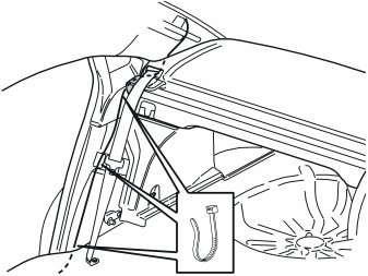 - Route the antenna cable down along the existing wiring at the rear edge of the side window down to the rear edge of the wheel arch
