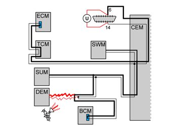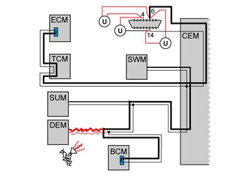 Note! Do not cut the power to the central electronic module (CEM) unless it is the last control module left to check.