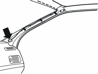 - Remove the right-hand sun visor and both snap fasteners. See Sun visor, replacing Removal and Replacement.