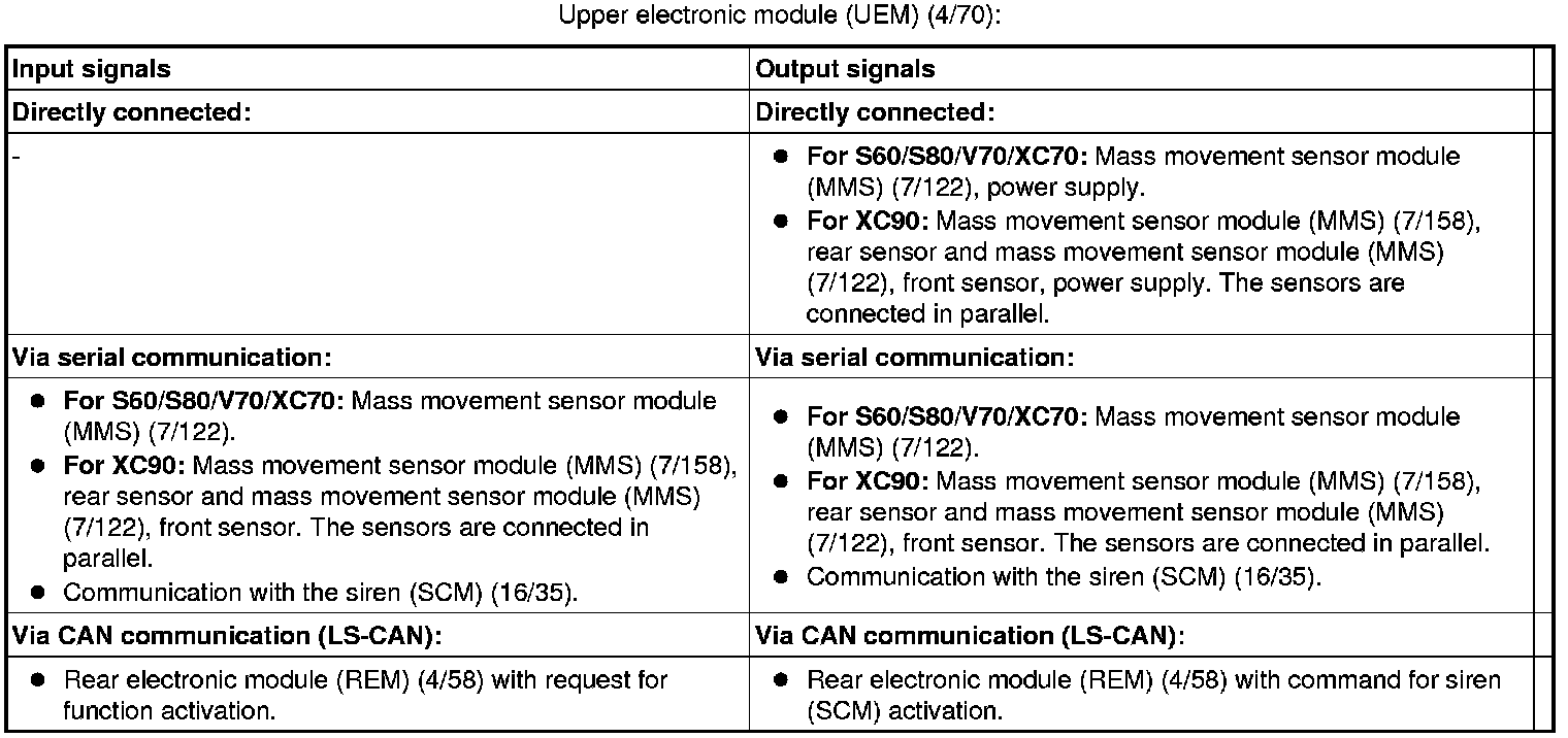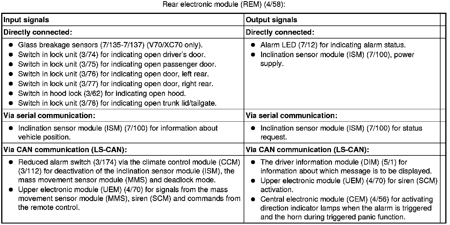 - glass breakage sensors in rear side windows and rear window (V70/XC70 only)