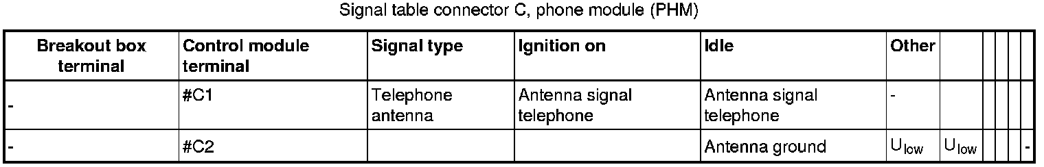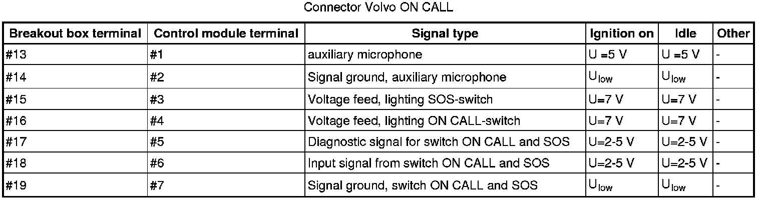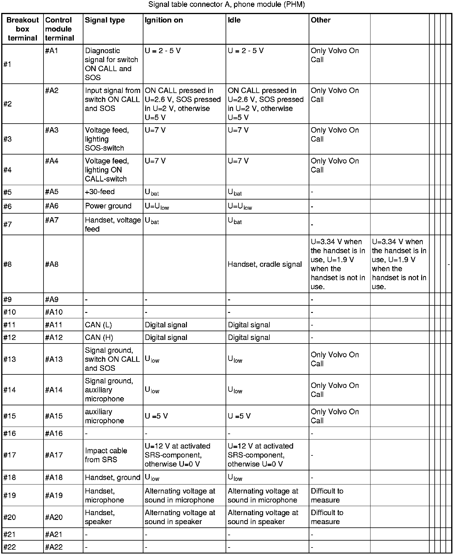 All the values given below are between the terminals stated in column 1 and terminal #1 in column 2 (signal ground). This applies unless otherwise indicated in brackets.