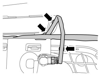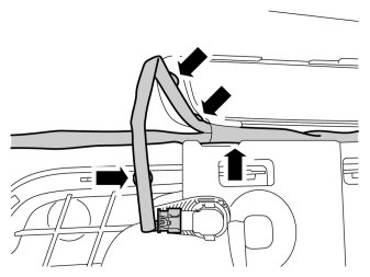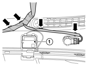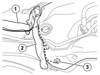 - Route the cable behind the cowl panel insulation (3) down along to the hole for the rubber grommet.