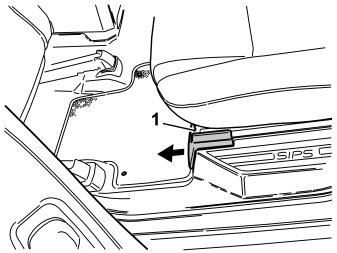 - Insert a screwdriver through the hole (1) on the seat link and press in the catch. Move the link backwards by prizing with a screwdriver between the seat runner and the link.