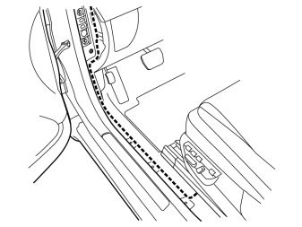 - Carefully pry off the cover panel at the bottom edge of the B-post panel so that it releases from the sill trim panel.