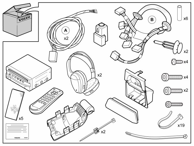 Note! There are two versions of cable harness for the tunnel console, with or without preparations for Digital TV receivers.The images in the installation instructions show cable harness without Digital TV receiver.