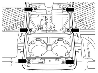 - Disconnect the connector. Press in the catches and unhook it from the tunnel console.