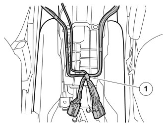- The junction (1) must be at the rear edge of the SRS control module. The cable marked with blue tape must go to the right seat and the other to the left seat. The cable with 2 x 4 pin connectors must be routed forward on the driver's side.