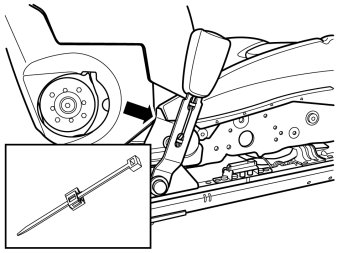 - Take a clip with cable tie from the kit and install it on the plate edge on the right-hand side of the left-hand seat.