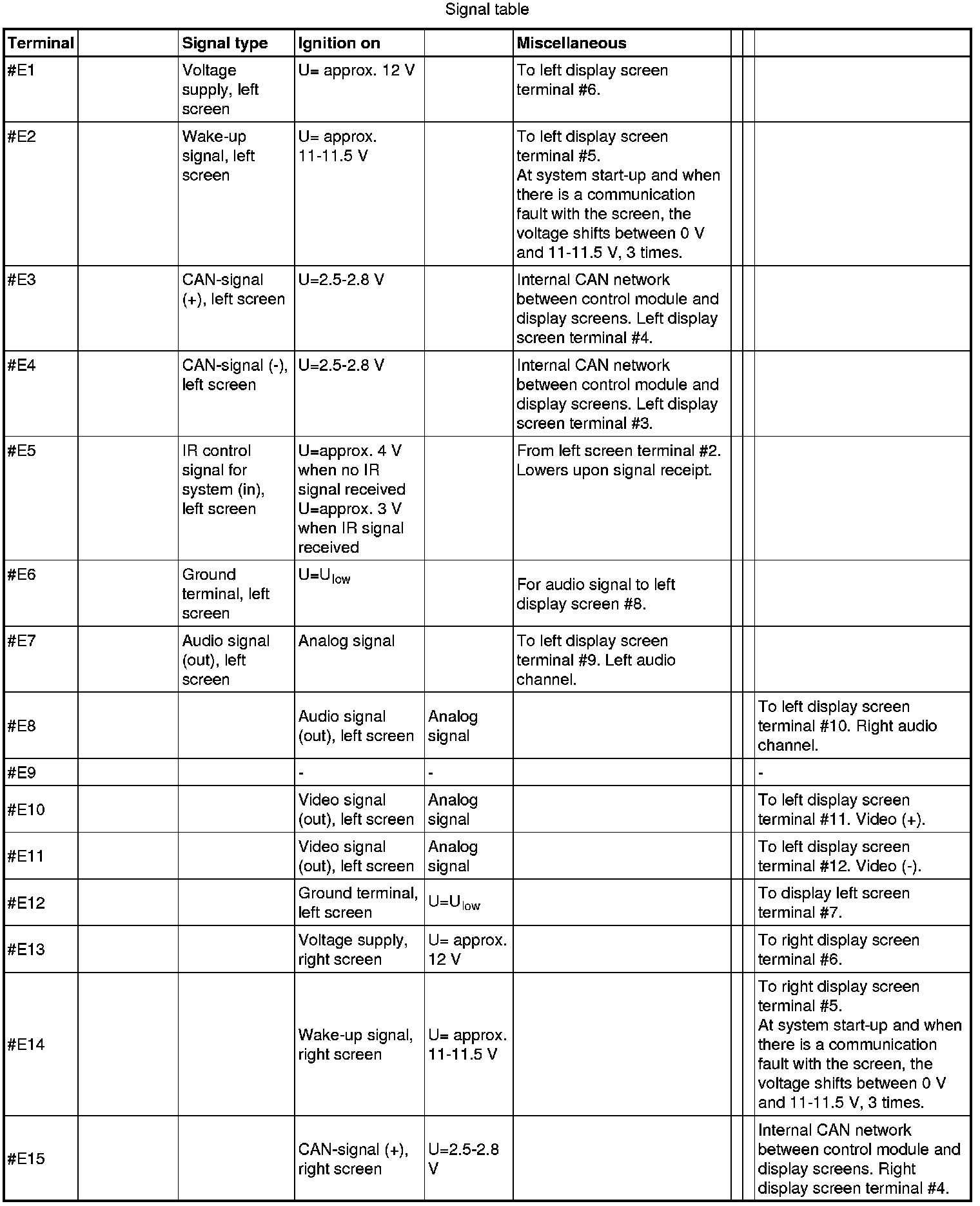 Signal specification, rear seat entertainment module (RSE), generation 4.3