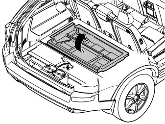 - Remove the storage box underneath and lift it out. If the floor hatch has a carrier bag holder on the underneath, it is secured by a strap on each of the shorter sides of the storage box. These straps must be undone