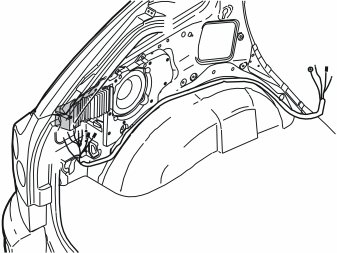 - Secure the subwoofer using the screws in the existing welded nuts above and behind the left-hand rear wheel arch. The washer must be positioned at the front/lower mounting of the subwoofer.