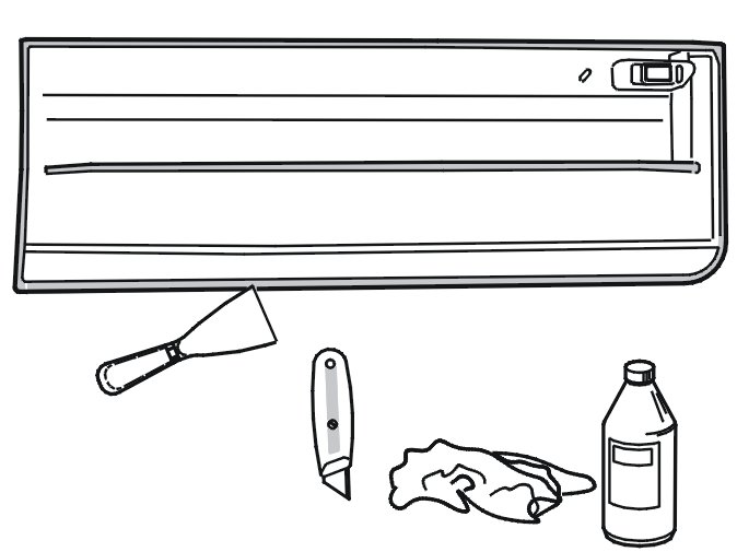 All adhesive residue must be removed from painted surfaces with plastic carriers mechanically. Use a plastic weatherstrip tool and then clean