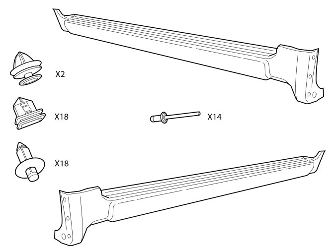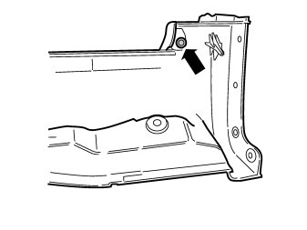 - Press the panel with the rubber strip along the body side. Ensure that all clips engage and that the rubber strip is correctly positioned.