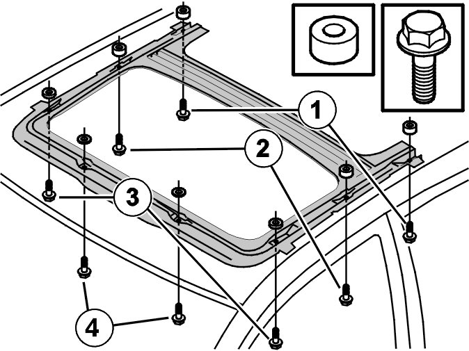 Note! For tightening torques, see Tightening torque [1][2]Body and Frame.