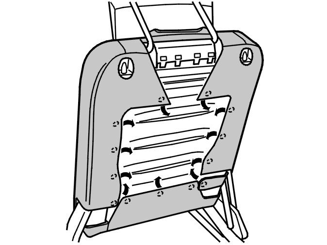 Remove the upholstery from the back panel. The upholstery is secured at 13 mounting points.