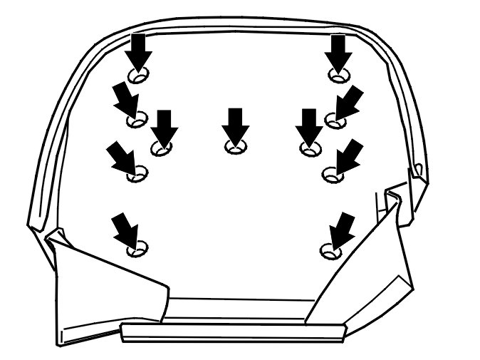 Remove the seat. See Upholstery backrest cushion outer (second row) Upholstery Backrest Cushion Outer (Second Row).
