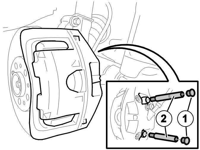 Note! Check the slide pins' rubber sleeves. Replace if necessary.