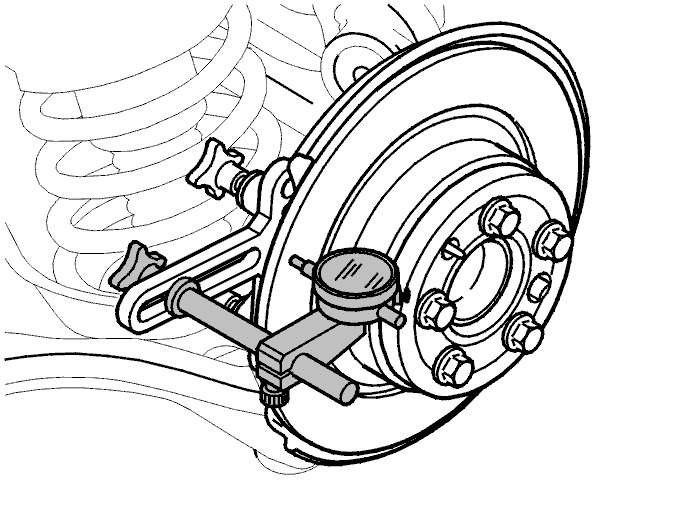 Put the test gauge point against the brake disc as illustrated.