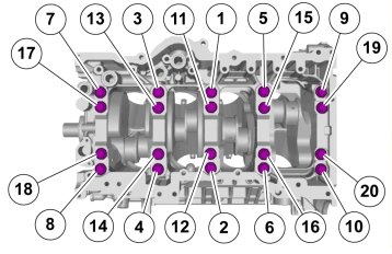 - the screws holding the oil pan to the intermediate section, 17 x M8 and 1 x M6. Tighten. Refer to: Tightening torque, B8444S Tightening Torque